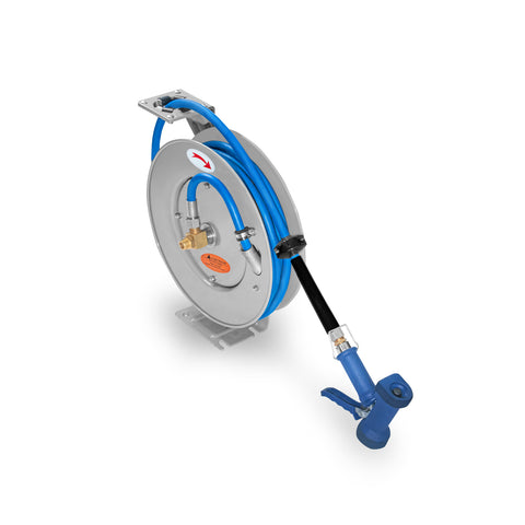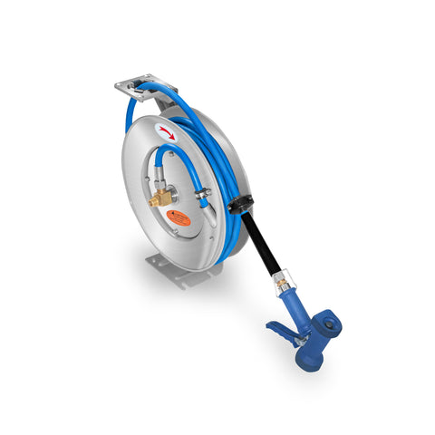 Manguera con Pistola y Carrete Retráctil de Acero Inoxidable
