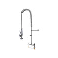 Manguera de prelavado para cocina profesional con instalación a cubierta, manguera flexible de acero inoxidable, presión de trabajo hasta 1000 PSI y regadera rociadora de alto desempeño. Incorpora 2 llaves separadas para agua fría y caliente y acabado cromado.